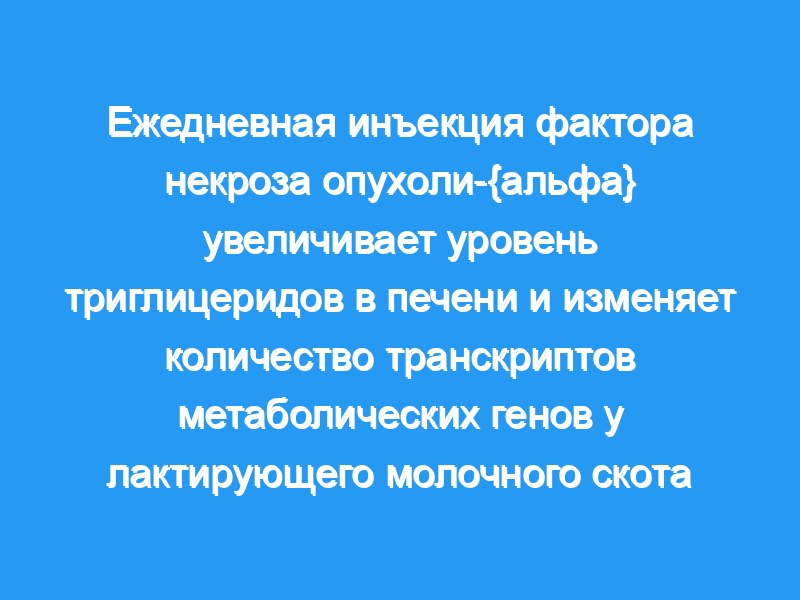 К 7-му дню потребление корма как rbTNF, так и коровами на парном вскармливании было примерно на 15% меньше, чем CON (P <, 0,01). Введение rbTNF приводило к увеличению содержания мРНК и белка TNFalpha в печени и повышению содержания ТГ в печени на 103% (P < 0,05), не влияя на концентрацию FFA в плазме.