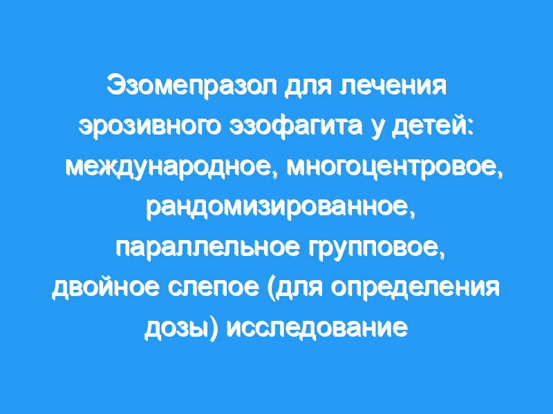 Эзомепразол (0,2-1,0 мг/кг) эффективно лечит макроскопический и микроскопический эрозивный эзофагит у этой детской популяции с гастроэзофагеальной рефлюксной болезнью. Расширение межклеточного пространства может быть важным гистологическим маркером эрозивного эзофагита у детей. Пробная регистрация: D9614C00097, ClinicalTrials.gov идентификатор NCT00228527.