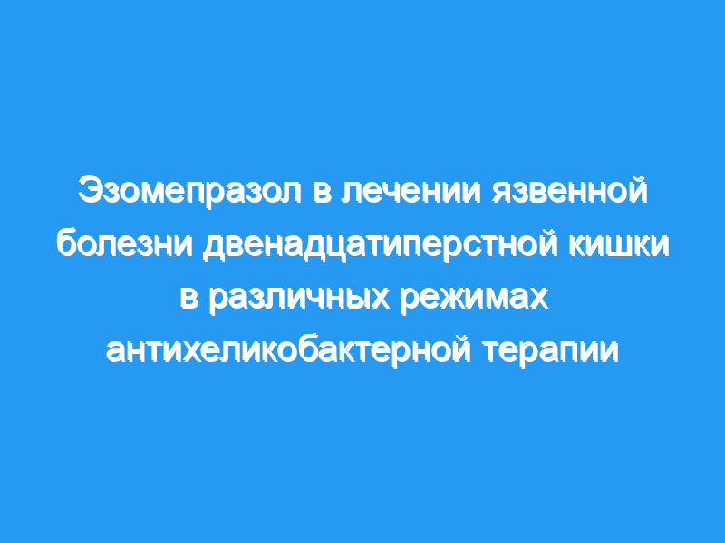 Оценить эффективность эзомепразола при лечении язвенной болезни двенадцатиперстной кишки (ДУ), ассоциированной с H. pylori, в различных режимах эрадикации.