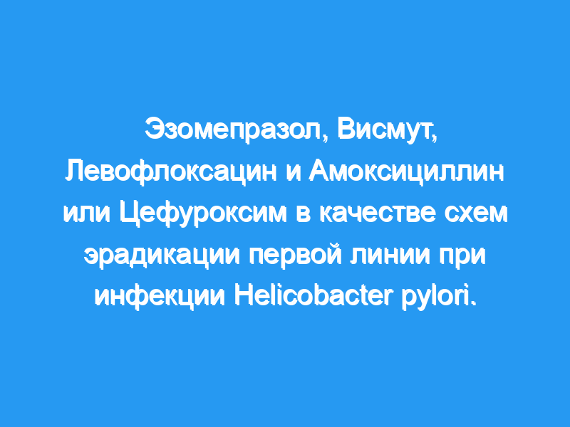 Эзомепразол, висмут, левофлоксацин и амоксициллин или цефуроксим достигли аналогичных и относительно удовлетворительных показателей излечения, безопасности и соответствия при эрадикации H. pylori первой линии. Цефуроксим может быть хорошим альтернативным лекарством для эрадикации вместо амоксициллина у пациентов, которые не могут принимать пенициллин.