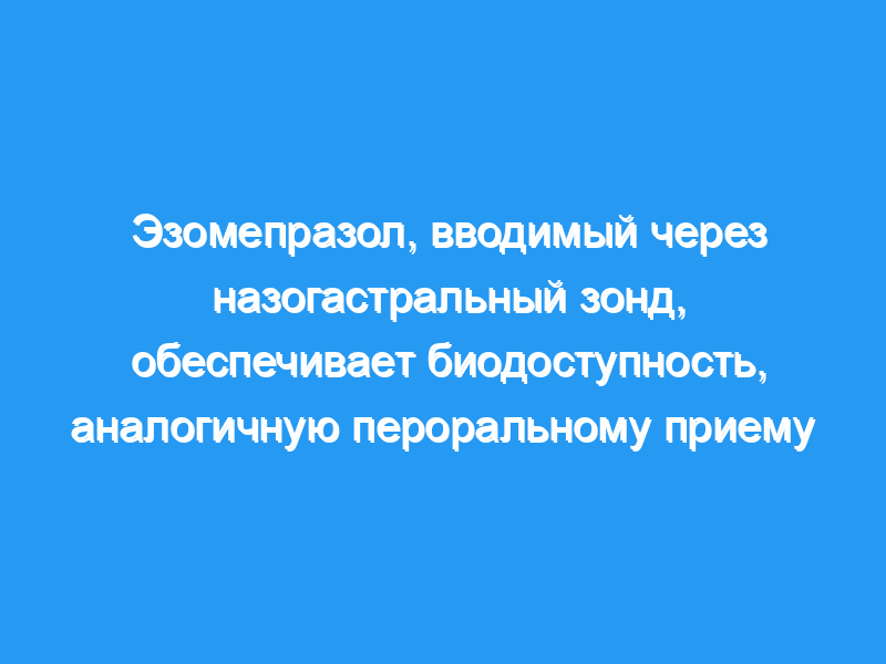 Введение через назогастральный зонд таблеток, покрытых кишечнорастворимой оболочкой, из открытой капсулы 40 мг эзомепразола обеспечивает биодоступность, аналогичную пероральному приему. Введение содержимого вскрытой капсулы эзомепразола в дозе 40 мг в воде через назогастральный зонд является практической альтернативой для пациентов с питательными трубками, которым требуется эффективное подавление кислотности желудочного сока, но которые не могут проглотить пероральный препарат.