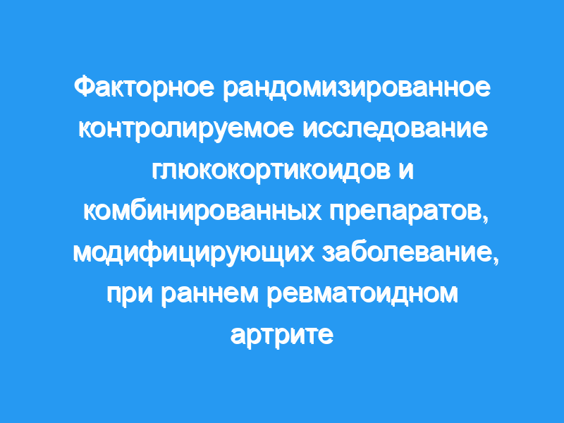 Лечение раннего активного ревматоидного артрита (РА) с помощью монотерапии модифицирующими заболевание противоревматическими препаратами (DMARD) дает неполные результаты, и интенсивное лечение представляется предпочтительным. Поскольку относительные преимущества сочетания двух DMARD, одного DMARD с глюкокортикоидами и двух DMARD с глюкокортикоидами являются неопределенными, мы определили их в факторном исследовании.