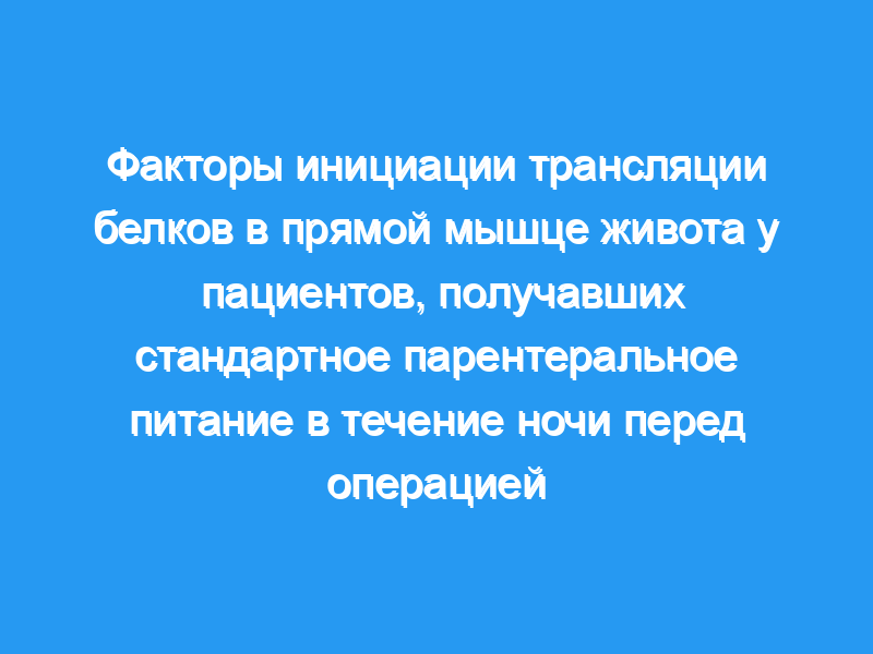 Таким образом, целью настоящего исследования было оценить влияние на инициацию трансляции белков скелетных мышц стандартной ночной TPN. В исследование были включены в общей сложности 12 пациентов, которым была проведена стандартная операция.