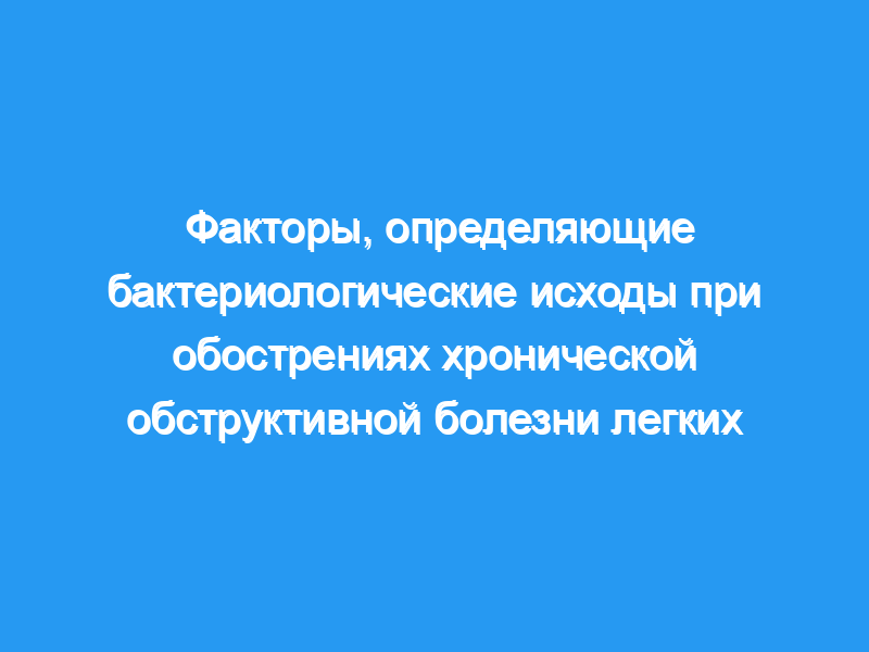 Изменения микробиологии мокроты после лечения антибиотиками острых обострений хронической обструктивной болезни легких (ХОБЛ), включая характер бактериологического рецидива и суперинфекции, недостаточно изучены. Микробиология мокроты при обострении обычно не проводится, но наличие и вид патогена являются определяющими факторами исходов. Поэтому мы определили, могут ли исходные клинические факторы предсказать наличие бактериальных патогенов при обострении. Бактериальная эрадикация в конце лечения (EOT) связана с клиническим разрешением обострения. Мы определили клинические, микробиологические и терапевтические факторы, которые были связаны с бактериологической эрадикацией при AECOPD во время EOT и в последующие 8 недель.