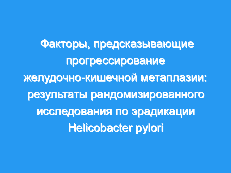 Предпосылки и цели: Желудочно-кишечная метаплазия (ИМ), как правило, считается предраковым поражением в каскаде канцерогенеза желудка. Это исследование выявило факторы риска, связанные с прогрессированием ИМ, в рандомизированном контрольном исследовании. Субъекты и методы: в общей сложности 587 пациентов, инфицированных Helicobacter pylori, были рандомизированы для получения недельного курса антихеликобактерной терапии (омепразол, амоксициллин и кларитромицин (ОАК)) или плацебо. Испытуемым была проведена эндоскопия с биопсией в начале исследования и через пять лет. Тяжесть ИМ оценивалась в соответствии с обновленной классификацией Сиднея, а прогрессирование определялось как ухудшение показателей ИМ через пять лет в антральном отделе или корпусе или развитие неоплазии. Обратная пошаговая множественная логистическая регрессия использовалась для выявления независимых факторов риска, связанных с прогрессированием ИМ.