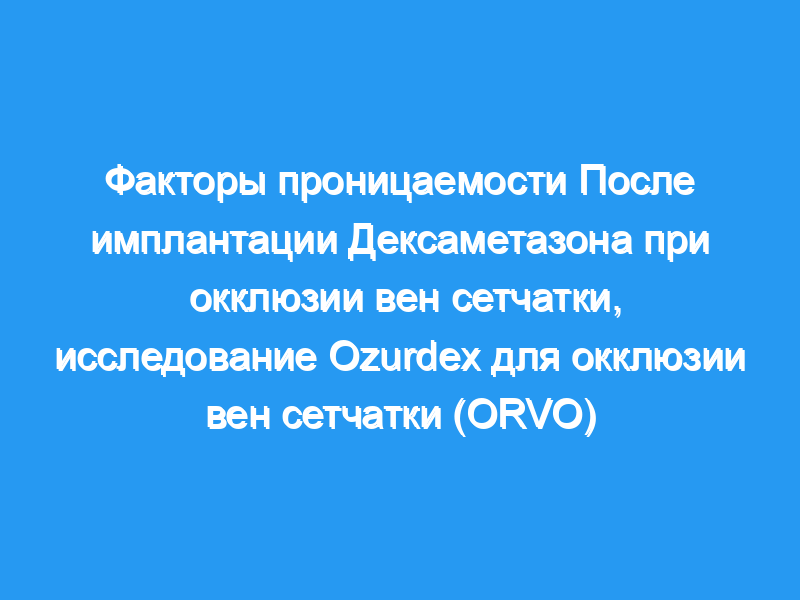 Для корреляции изменений водного вазоактивного белка с макулярным отеком после имплантации дексаметазона при окклюзии вен сетчатки (РВО). Дизайн: Проспективная серия интервенционных случаев.