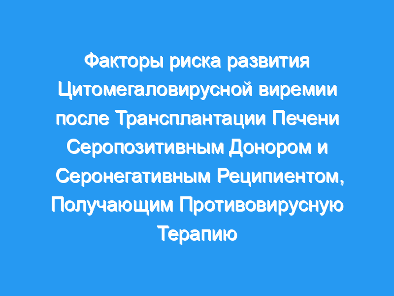 Факторы риска развития виремии у серопозитивных к цитомегаловирусу (ЦМВ) доноров высокого риска и реципиентов ЦМВ-серонегативных (D+R-) реципиентов трансплантата определены не полностью.