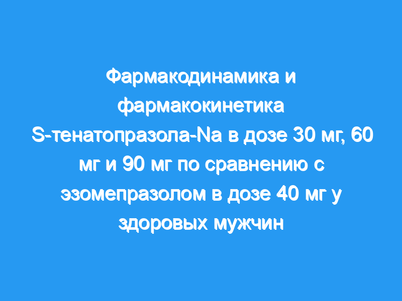 Было проведено одноцентровое двойное слепое рандомизированное 4-стороннее перекрестное исследование с участием 32 здоровых мужчин. S-тенатопразол-Na 30, 60 или 90 мг или эзомепразол 40 мг вводили один раз в день в течение 5 дней с 10-дневными интервалами вымывания. 24-часовой внутрижелудочный рН регистрировали на исходном уровне и на 5-й день каждого периода.