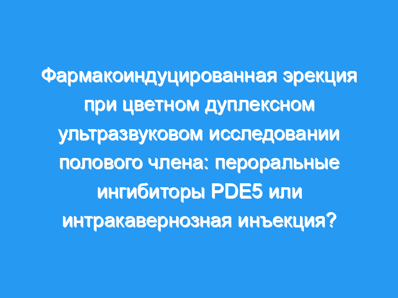 Чтобы проспективно сравнить клинические реакции и результаты цветного дуплексного ультразвукового исследования полового члена (PCDU) при пероральном применении ингибиторов PDE5 (PDE5-Is) с внутрикавернозной инъекцией папаверина (ICI) и оценить, можно ли использовать PDE5-Is в качестве альтернативы инъекциям вазоактивных агентов, 25 пациентам с ЭД трижды проводили PCDU с интервал не менее 1 недели, используя различные фармакологические индукции: режим ICI (30-60 мг папаверина), режим силденафила (100 мг силденафила) и режим тадалафила (20 мг тадалафила). Предпочтения пациентов были собраны после завершения всех тестов.