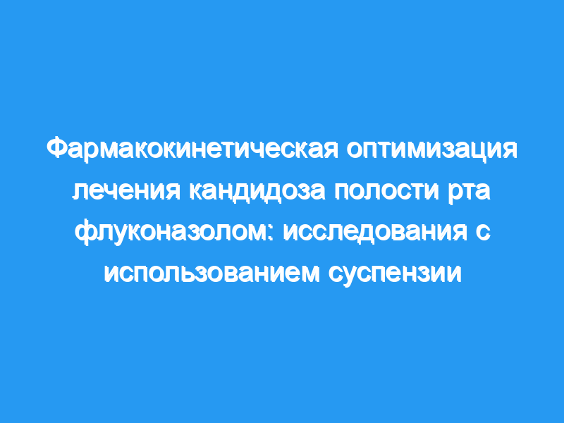 Через четыре часа после введения концентрации флуконазола в суспензии, слюне и плазме крови находились в равновесии при соотношении слюна:плазма около 1,2. Взятые вместе, настоящие результаты предполагают, что лечение кандидоза полости рта флуконазолом может быть оптимизировано с помощью пероральной суспензии, поскольку это обеспечивает фармакологически активные уровни препарата в месте введения. инфекции как местным, так и системным путями.