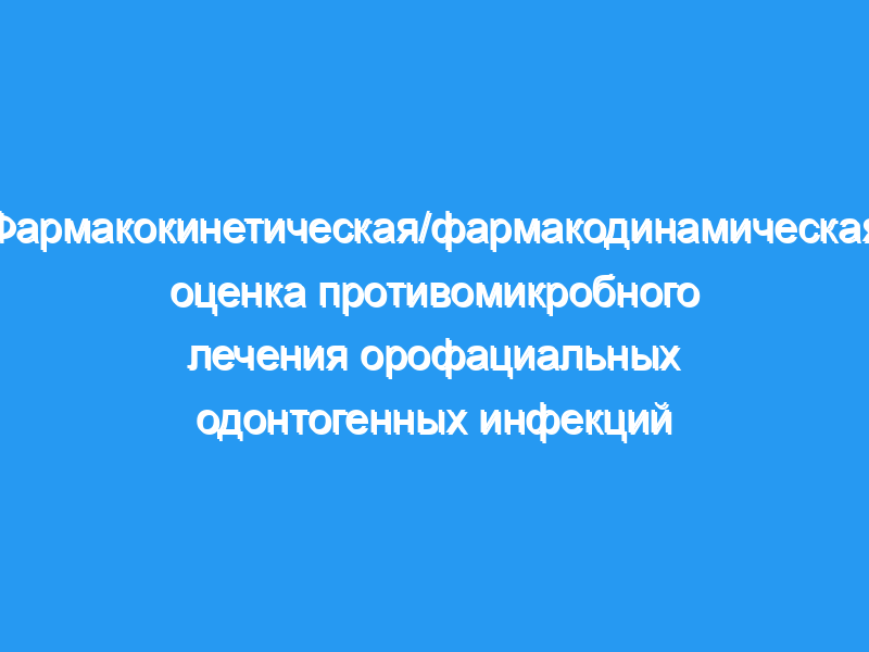 Оценить эффективность противомикробной терапии при одонтогенных инфекциях полости рта с использованием оцененных фармакокинетических/фармакодинамических параметров или индексов эффективности и сравнить фармакокинетические/фармакодинамические контрольные точки с контрольными точками Национального комитета по клиническим лабораторным стандартам (NCCLS). План исследования: Ретроспективный поиск литературы для получения значений минимальной ингибирующей концентрации (MIC), фармакокинетических параметров противомикробных препаратов и контрольных точек NCCLS. Фармакокинетическое моделирование проводили с использованием программного обеспечения WinNonlin (Pharsight Corporation, Маунтин-Вью, Калифорния, США).