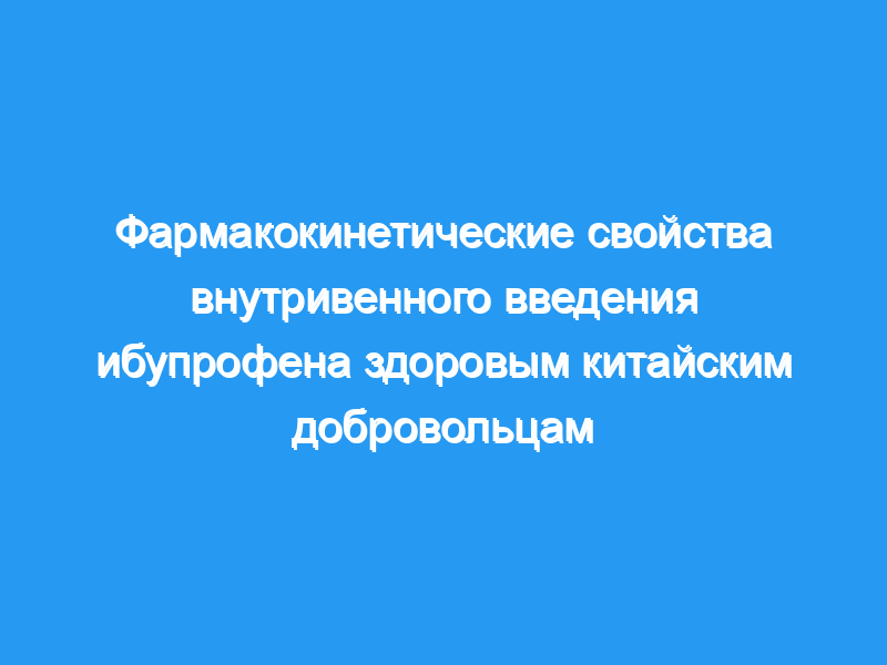 Предпосылки и цели: Данные о фармакокинетике внутривенного введения ибупрофена в китайской популяции отсутствовали, а опубликованная информация оставалась неадекватной. Целью настоящего исследования было изучение фармакокинетических свойств внутривенного введения ибупрофена здоровым китайским добровольцам после однократного и многократного введения. Двенадцать испытуемых получали однократные дозы ибупрофена внутривенно по 200, 400 и 800 мг соответственно и многократные дозы ибупрофена внутривенно по 400 мг четыре раза в день (каждые 6 ч) до утра шестого дня в течение каждого периода исследования.