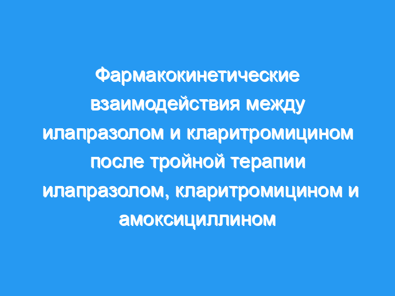 Изучить лекарственное взаимодействие между илапразолом, новым ингибитором протонной помпы, и кларитромицином после комбинированной терапии илапразолом, кларитромицином и амоксициллином. Двенадцать здоровых китайских добровольцев были набраны в рандомизированном, открытом, 3-периодном перекрестном исследовании. Всем испытуемым вводили илапразол (5 мг), кларитромицин (500 мг) или тройную терапию, включающую илапразол (5 мг), кларитромицин (500 мг) и амоксициллин (1 г), два раза в день в течение 6 дней подряд. На 7-й день препараты вводили один раз, а образцы крови собирали и анализировали с использованием хорошо проверенного метода ВЭЖХ/МС/МС.