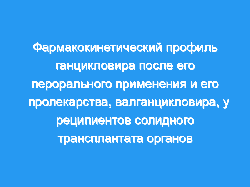 Валганцикловир (Valcyte) недавно был одобрен для профилактики цитомегаловирусной инфекции (ЦМВ) у реципиентов с высоким риском (ЦМВ-положительный донор [D+]/отрицательный реципиент [R-]) трансплантации солидных органов (СОТ). Крупномасштабные исследования, описывающие фармакокинетику валганцикловира у реципиентов СОТ, отсутствуют. Недавнее рандомизированное двойное слепое исследование валганцикловира у 364 реципиентов D+/R- (популяции с намерением лечения) SOT предоставило ценные данные, на основе которых был проведен популяционный фармакокинетический анализ.
