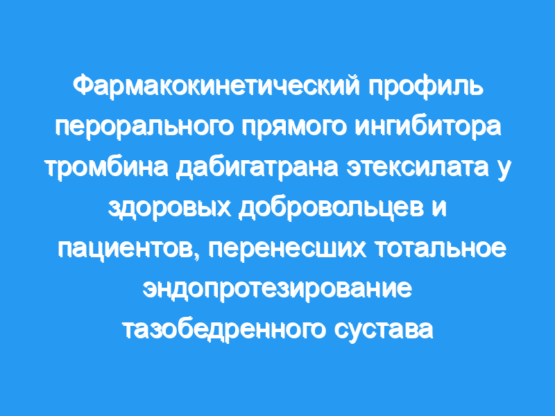 Авторы исследовали абсорбцию, распределение и выведение одного капсулированная форма дабигатрана этексилата в дозе 150 мг у здоровых добровольцев и пациентов, перенесших тотальное эндопротезирование тазобедренного сустава.