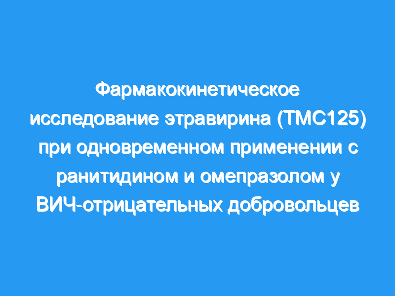 Этравирин — ненуклеозидный ингибитор обратной транскриптазы нового поколения (NNRTI), обладающий активностью в отношении ВИЧ-резистентного к дикому типу и NNRTI. Ингибиторы протонной помпы и Н(2)-антагонисты часто используются среди ВИЧ-инфицированной популяции, и были описаны лекарственные взаимодействия с другими антиретровирусными препаратами. В этом исследовании оценивалось влияние стационарных омепразола и ранитидина на фармакокинетику однократной дозы этравирина.