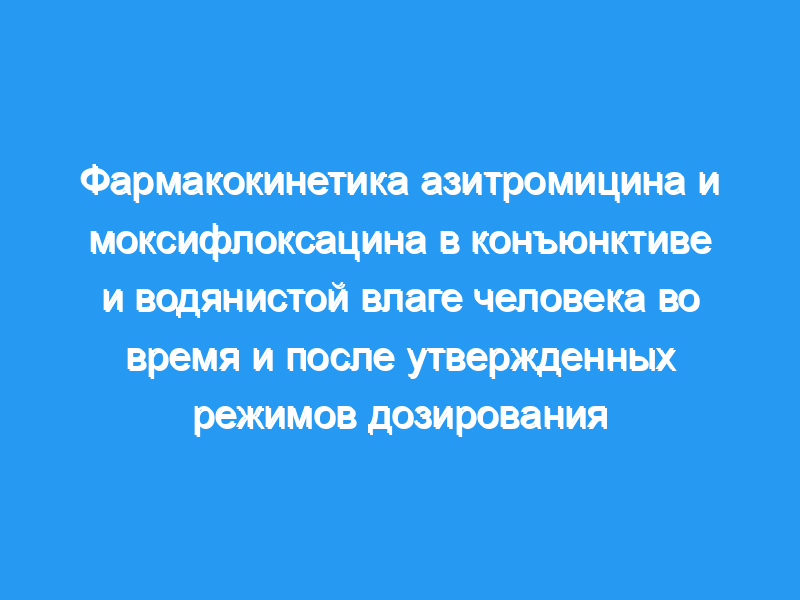 Азитромицин 1% обеспечивал высокие концентрации (пиковый уровень, 559,7 мкг/г) в конъюнктиве человека, которые поддерживались на уровнях от 1 до 2 порядков выше, чем у моксифлоксацина 0,5% в течение 7-дневного периода приема и, по крайней мере, в течение 7 дней после этого. Азитромицин также показал увеличенный период полувыведения (65,7 часа) в конъюнктиве по сравнению с моксифлоксацином (28,6 часа). Соответственно, концентрация азитромицина поддерживалась значительно выше минимальной ингибирующей концентрации, необходимой для ингибирования роста 90% тестируемых бактериальных изолятов, в течение по меньшей мере 7 дней, тогда как уровни моксифлоксацина в конъюнктиве снижались до уровней, равных или меньших минимальной ингибирующей концентрации, необходимой для ингибирования роста 90% тестируемых бактериальных изолятов, приблизительно Через 24 часа после последней дозы. Пиковая концентрация моксифлоксацина в водянистой влаге была выше (0,77 мкг/мл), чем у азитромицина (0,053 мкг/мл). Никаких клинически значимых данных о безопасности не наблюдалось.