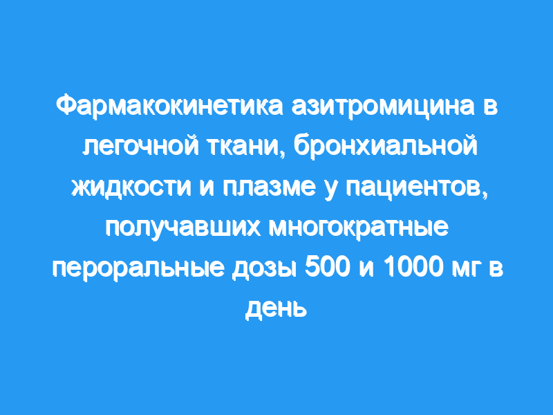 Азитромицин широко распределялся в нижних дыхательных путях, устойчивые концентрации препарата были обнаружены во время последнего отбора проб (204 ч) в легочной ткани и промывке бронхов, с длительным конечным периодом полувыведения.-продолжительность жизни 132,86 и 74,32 ч при приеме 500 мг в день и 133,32 и 70,5 ч при приеме 1000 мг в день соответственно.