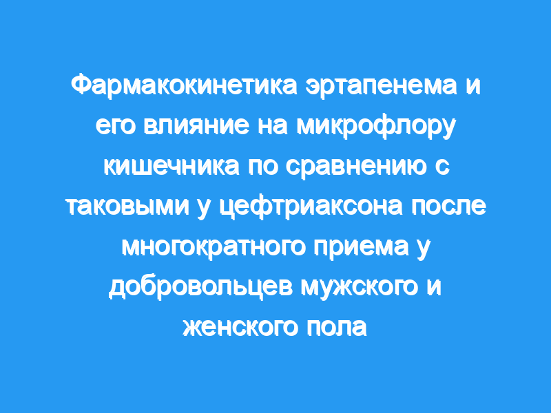 Фармакокинетика эртапенема и цефтриаксона была исследована в открытом рандомизированном двухпериодном перекрестном исследовании после однократного и многократного введения 10 здоровым добровольцам (пяти женщинам и пяти мужчинам). Оба антибиотика вводили внутривенно один раз в день в течение 7 дней в дозах 1 г (эртапенем) и 2 г (цефтриаксон). Концентрации антибиотиков в сыворотке и моче определяли количественно с помощью биоанализа методом диффузии в лунку на агаре и, кроме того, только для эртапенема, методом жидкостной хроматографии в сочетании с тандемной масс-спектрометрией (LC-MS/MS). Для эртапенема максимальная концентрация препарата в плазме (C(max)) составляла 256 мг/л, период полувыведения составлял 20,7 ч, а площадь под кривой концентрация-время в плазме (AUC) составляла 830 м.
