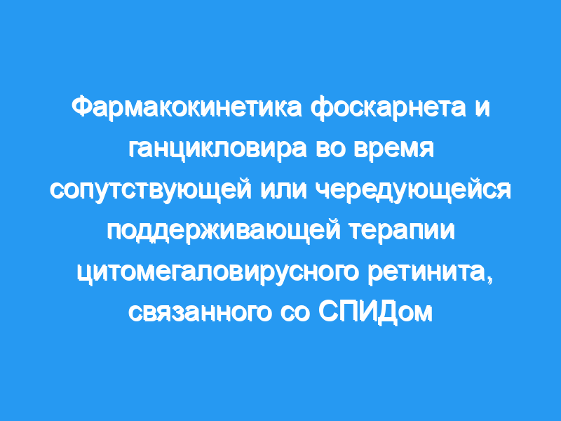 Фармакокинетика фоскарнета и ганцикловира была определена у 13 пациентов, получавших либо сопутствующую терапию (режим А), либо ежедневную чередующуюся терапию (режим В) для поддержания цитомегаловирусной болезни. Для режима А ежедневно последовательно вводили фоскарнет в дозе 60 мг/кг внутривенно и ганцикловир в дозе 3,75 мг/кг, для режима В — фоскарнет в дозе 120 мг/кг и ганцикловир в дозе 6 мг/кг поочередно. Для обоих режимов последовательный забор крови для фармакокинетического анализа проводили для каждого препарата отдельно (1 или 2-й день) и после 2 недель комбинированной терапии. Образцы плазмы для анализа фоскарнета и ганцикловира были взяты с помощью высокоэффективной жидкостной хроматографии. Фармакокинетический анализ проводили с использованием несопоставимых методов.