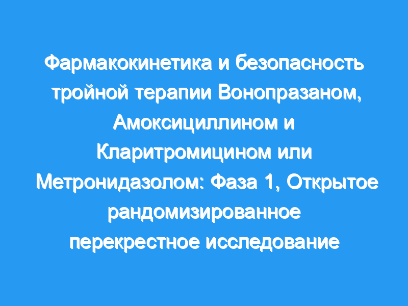 В этом одноцентровом, фаза 1, открытом, рандомизированном, четырехстороннем перекрестном исследовании здоровые японские мужчины, отрицательные к Helicobacter pylori, были случайным образом распределены на 1 из 4 последовательностей лечения в двух когортах (по 12 человек на когорту). Каждая последовательность обработки включала четыре периода обработки, разделенных периодом вымывания 7 или 14 дней. Оценивали фармакокинетические параметры вонопразана, амоксициллина, кларитромицина и метронидазола при однократной или тройной терапии. Все нежелательные явления были зарегистрированы.