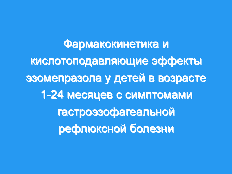 Оценить фармакокинетику и кислотоподавляющие эффекты эзомепразола у младенцев с гастроэзофагеальной рефлюксной болезнью (ГЭРБ). Пациенты и методы: В этом одиночном слепом рандомизированном исследовании с параллельными группами 50 младенцев в возрасте от 1 до 24 месяцев с симптомами ГЭРБ и >, or=5% времени с внутрипищеводным pH <,4 в течение 24-часового двойного мониторинга pH получали пероральный эзомепразол в дозе 0,25 мг/кг (n = 26) или 1 мг/кг (n = 24) один раз в день в течение 1 недели. Внутрипищеводный и внутрижелудочный рН регистрировали через 1 неделю, и брали образцы крови для фармакокинетического анализа.