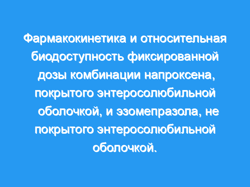 В этом рандомизированном 4-стороннем перекрестном исследовании оценивалась фармакокинетика однократной дозы и относительная биодоступность напроксена и эзомепразола после приема комбинированной таблетки с фиксированной дозой, содержащей 500 мг напроксена, покрытого энтеросолюбильной оболочкой (ЕС), и 20 мг магния, не содержащего ЕС эзомепразола (таблетка NAP/ESO). В качестве сравнения использовались эквивалентные дозы таблетки EC напроксена плюс капсулы EC эзомепразола магния, принимаемые одновременно, отдельно таблетки EC напроксена или отдельно капсулы EC эзомепразола магния.