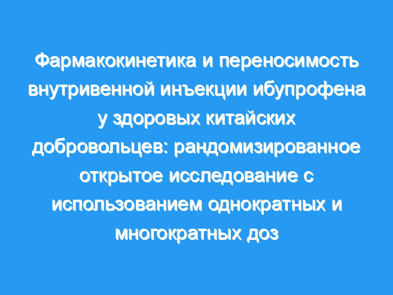 Недавно в Китае была разработана рецептура ибупрофена для внутривенного введения (в/в) для лечения легкой и умеренной боли у пациентов, которые не могут принимать пероральные препараты или где предпочтительнее внутривенное введение. Целью данного исследования была оценка фармакокинетических свойств и переносимости однократных и многократных доз инъекций ибупрофена у здоровых китайских добровольцев.