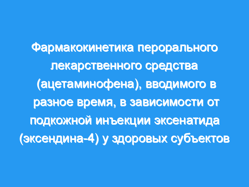 В дни эксенатида ацетаминофен принимался внутрь в -1, 0, +1, +2, и +4 часа по сравнению с 10 мг эксенатида, введенного подкожно через 0 часов.