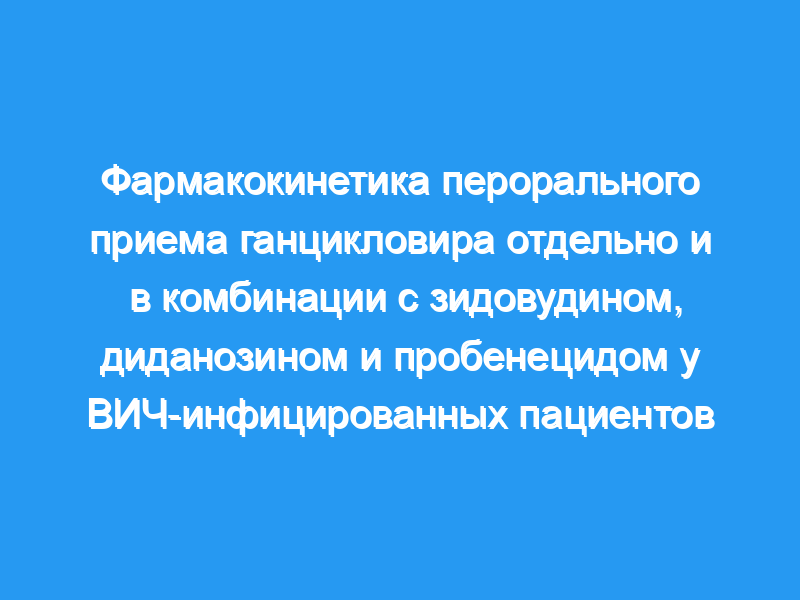 Целью этого исследования было определить, взаимодействует ли пероральный ганцикловир фармакокинетически с зидовудином (AZT), диданозином (ddI) или пробенецином.