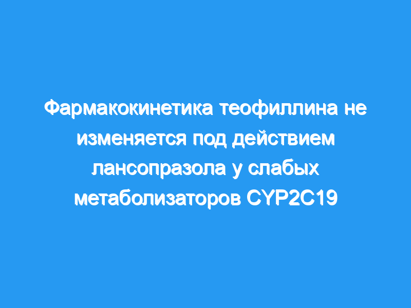В исследовании сравнивалась фармакокинетика лансопразола и теофиллина у пяти белых крыс с интенсивным метаболизмом, шесть корейских активных метаболизаторов и семь слабых метаболизаторов CYP2C19. Фармакокинетика лансопразола значительно различалась между группами, значения AUC составляли 1,55+/-0,20 мкг х ч/мл у белых экстенсивных метаболизаторов, 7,01+/-0,72 мкг х ч/мл у корейских экстенсивных метаболизаторов и 14,34+/-2,60 мкг х ч/мл у бедных метаболизаторов (P <, .001). Введение лансопразола не приводило к изменению внутривенного клиренса теофиллина по сравнению с плацебо ни в одной группе, и клиренс теофиллина не коррелировал с AUC лансопразола (rs = 0,12, P >, .1). Эти данные свидетельствуют о том, что обычные терапевтические дозы лансопразола не оказывают клинически значимого влияния на клиренс теофиллина даже у слабых метаболизаторов CYP2C19.