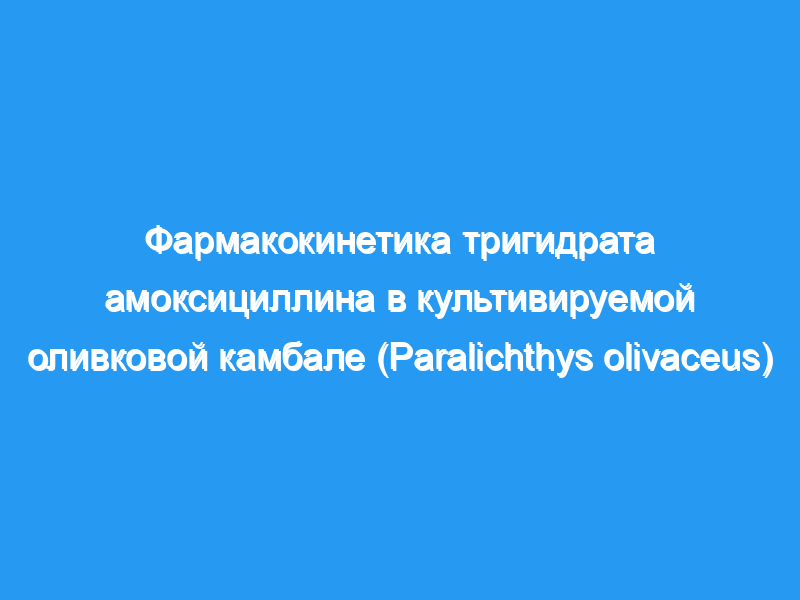 Целью исследования было изучение фармакокинетики тригидрата амоксициллина (AMOX) в оливковой камбале (Paralichthys olivaceus) после перорального, внутримышечного и внутривенного введения с использованием высокоэффективной жидкостной хроматографии followin.