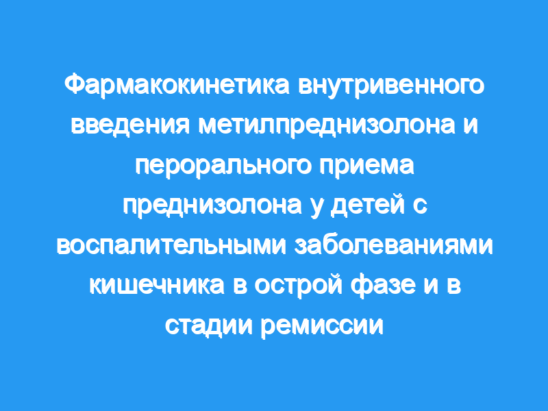 Настоящее исследование было предпринято для оценки влияния воспалительных заболеваний кишечника на фармакокинетику внутривенного введения метилпреднизолона и преднизолона (после перорального введения преднизолона). Пациенты: Двенадцать детей с воспалительным заболеванием кишечника в возрасте 12,3 лет были обследованы в активной фазе и в стадии ремиссии. У 6 пациентов заболевание отреагировало на пероральный прием преднизолона, в то время как у 6 не отреагировало.