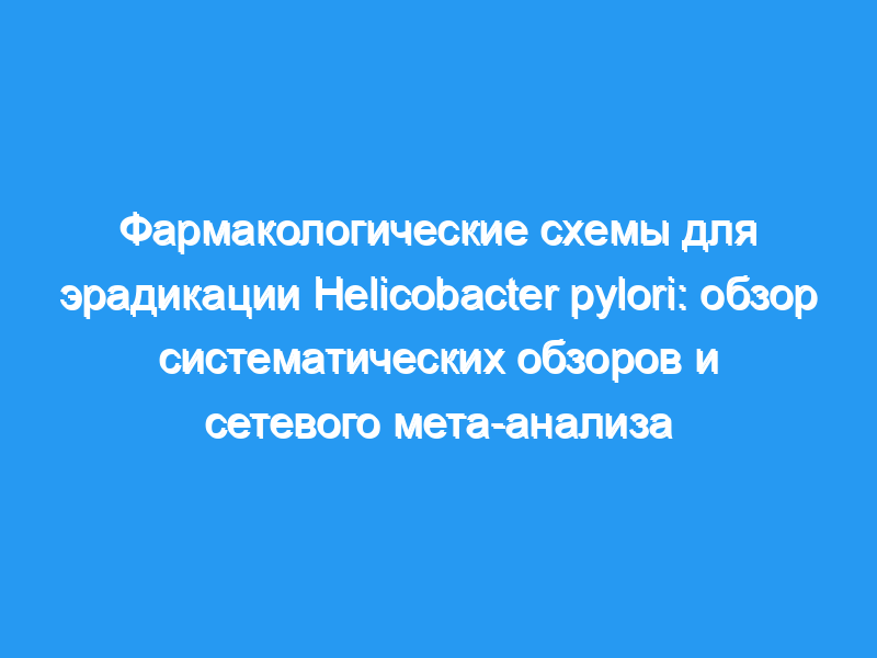 Примерно половина населения земного шара инфицирована Helicobacter pylori (H.pylori), бактерией, которая, как было показано, связана с рядом желудочно-кишечных заболеваний. Публикуется все большее число систематических обзоров (SRS), сравнивающих эффективность различных методов лечения инфекции H.pylori, но не приводящих к единому выводу. Целью данного исследования является предоставление обзора SRS фармакологических методов лечения для эрадикации H.pylori.