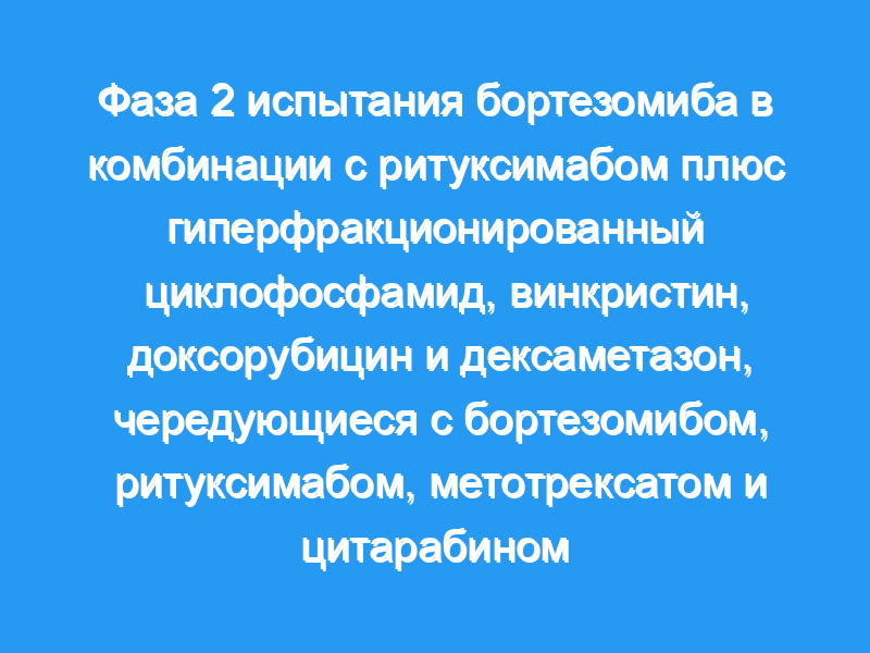 Это отчет о проспективном исследовании фазы 2 бортезомиба, добавленного к ритуксимабу плюс гиперфракционированный циклофосфамид, винкристин, доксорубицин и дексаметазон (BzR-hyperCVAD)/ритуксимаб, высокие дозы метотрексата и высокие дозы цитарабина (BzR-MA) у 95 пациентов с недавно диагностирован MCL.
