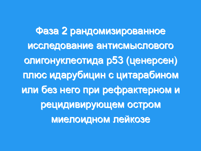Чтобы определить, заслуживает ли ценерсен тестирования в более крупных исследованиях эффективности, было проведено пробное исследование ценерсена в комбинации с идарубицином либо отдельно, либо с 1 из 2 доз цитарабина у пациентов с ОМЛ, впервые спасенных. В исследование были включены пациенты, которые либо не ответили на один индукционный курс, либо ответили на индукцию, но в течение 12 месяцев у них произошел рецидив. Правила остановки, основанные на ожидаемом уровне полного ответа (CR) в 14%, были применены к каждой группе лечения.