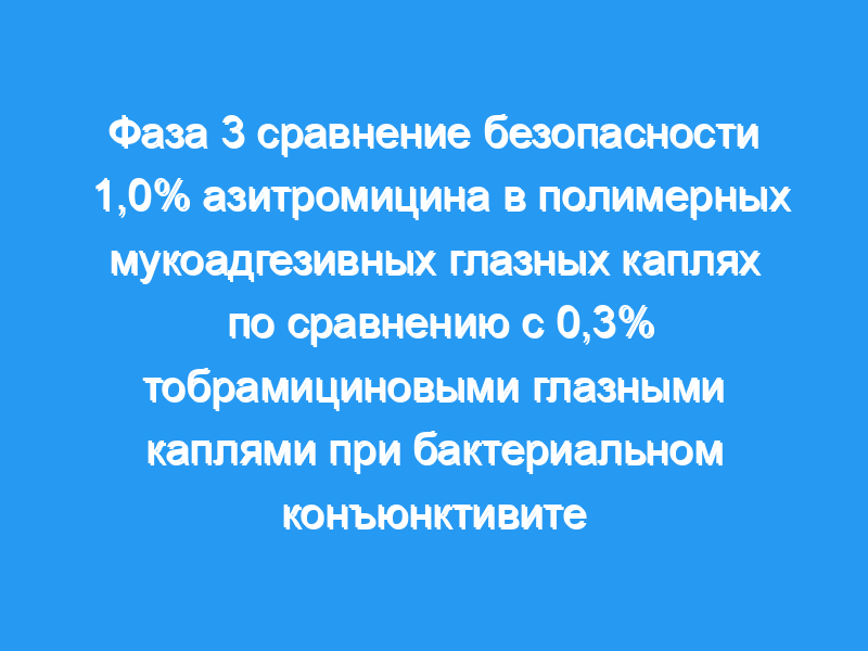 Сравнить безопасность и переносимость 1,0% азитромицина в полимерной мукоадгезивной системе доставки с 0,3% офтальмологическим раствором тобрамицина для лечения бактериального конъюнктивита.