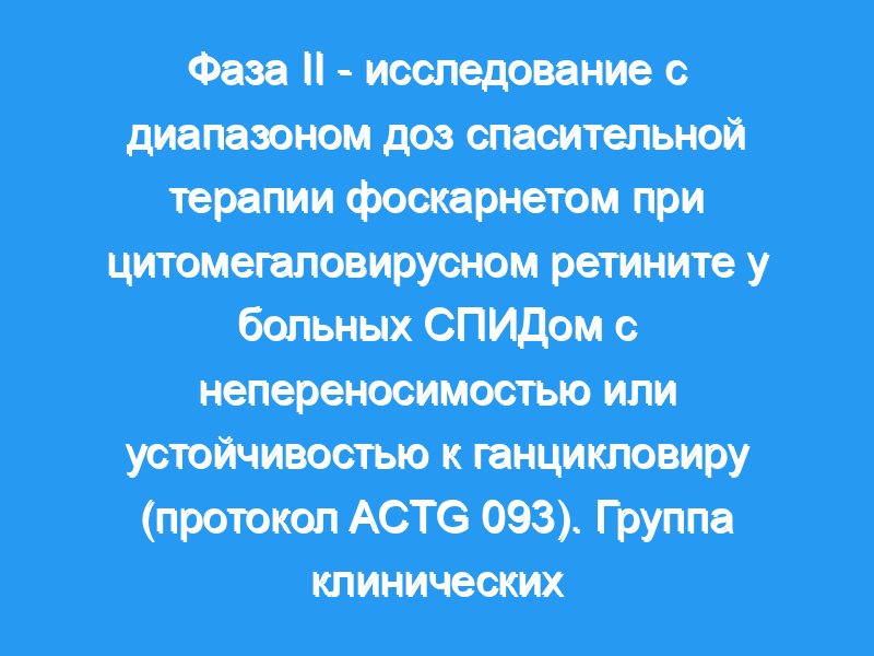 Документировать реакцию на терапию фоскарнетом у пациентов с цитомегаловирусным (ЦМВ) ретинитом, у которых непереносимость или резистентность к ганцикловиру.