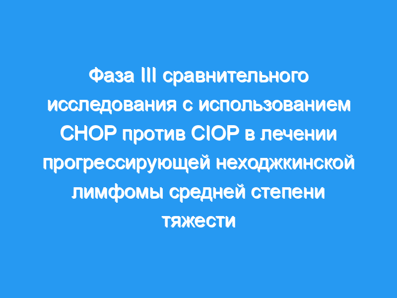 До сих пор данные литературы подтверждают тот факт, что режим CHOP представляет собой стандартную терапию первой линии для пациентов с прогрессирующей неходжкинской лимфомой средней степени тяжести.
