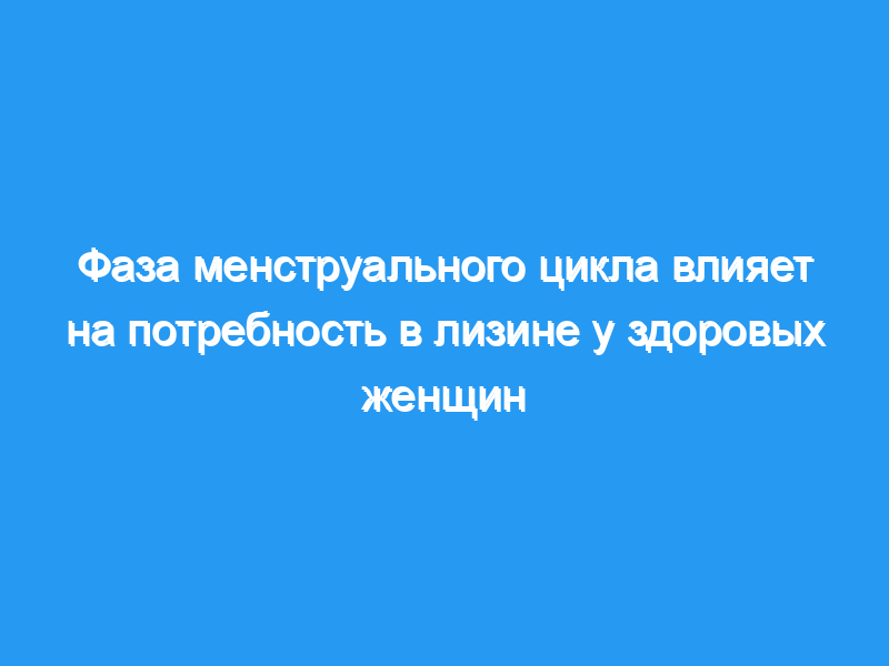 Потребность в лизине здоровых женщин в лютеиновой фазе составляла 37,7 mg.kg (-1).день(-1) и выше (P = 0,025), чем у женщин в фолликулярной фазе (35,0 mg.kg (-1).день(-1)). При всех уровнях потребления лизина содержание аминокислот в плазме крови было ниже, а окисление фенилаланина было выше в лютеиновой фазе по сравнению с фолликулярной фазой.