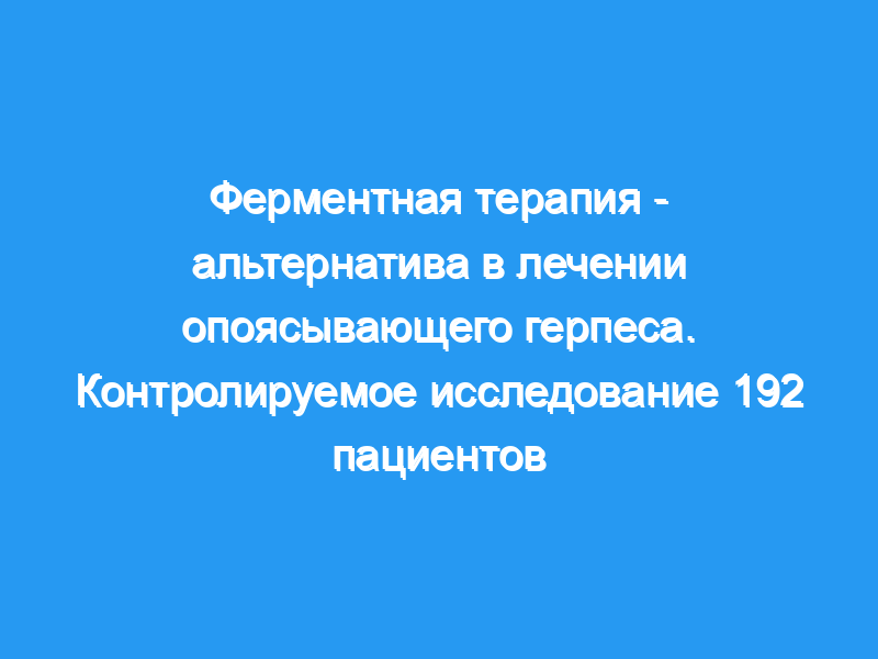 Целью настоящего исследования было установить, могут ли быть подтверждены положительные результаты предварительного исследования, включающего лечение комбинированным препаратом ферментов. Способ: В течение 14 дней двум группам по 96 пациентов в каждой давали ацикловир или комбинированный препарат с ферментами. В ходе исследования была исследована интенсивность (оценка) сегментарной боли и различных поражений кожи.