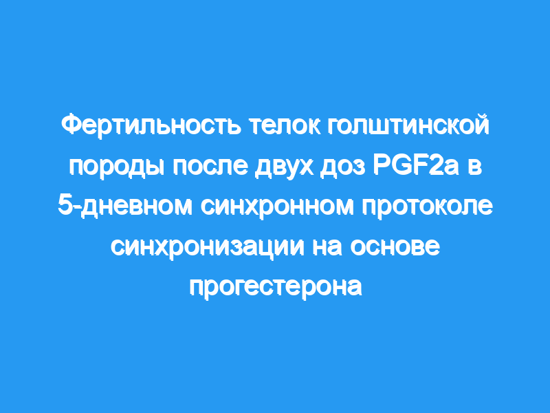 Целью исследования было определить влияние трех различных обработок PGF2a (PGF) в 5-дневном синхронном протоколе синхронизации на основе прогестерона на частоту наступления беременности (PR) при искусственном осеменении (ИИ) у телок голштинской породы в Турции и Соединенных Штатах.