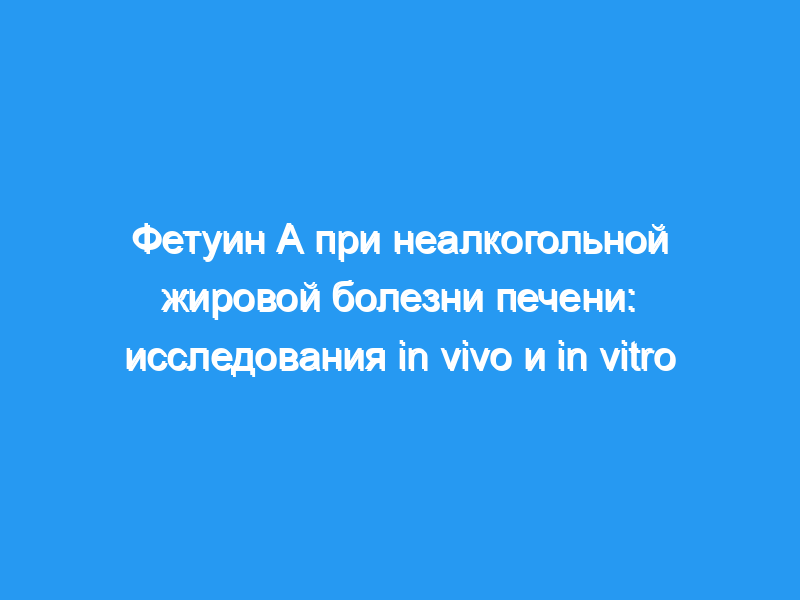 Фетуин А был связан с резистентностью к инсулину и метаболическим синдромом. Поэтому мы исследовали роль фетуина А при неалкогольной жировой болезни печени (НАЖБП). Дизайн: Поперечные и интервенционные исследования.