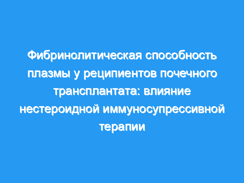 Наше исследование предполагает, что безстероидная иммуносупрессия связана с лучшей фибринолитической способностью при RTRS. Это открытие может способствовать снижению риска сердечно-сосудистых событий.