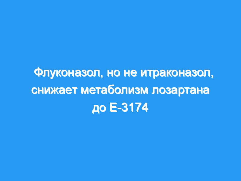 Средняя пиковая концентрация в плазме (Cmax) и площадь под кривой [AUC (0-бесконечность)] E-3174 были значительно снижены флуконазолом до 30% и до 47% от их контроля значения, соответственно, и t1/2 был увеличен до 167%. Флуконазол вызывал лишь незначительное увеличение (на 23-41%) AUC и t1/2 неизмененного лозартана. Итраконазол не оказывал существенного влияния на фармакокинетические параметры лозартана или Е-3174. Соотношение AUC(0-бесконечность)(E-3174)/AUC(0-бесконечность)лозартана было на 60% меньше во время приема флуконазола, чем во время приема плацебо и итраконазола. Между фазами флуконазола, итраконазола и плацебо не наблюдалось клинически значимых изменений в влиянии лозартана на артериальное давление и частоту сердечных сокращений.