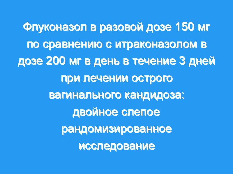 Сравнить безопасность и эффективность флуконазола в разовой дозе 150 мг и итраконазола в дозе 200 мг в день в течение 3 дней при лечении острого эпизода вульвовагинального кандидоза (ВВК).