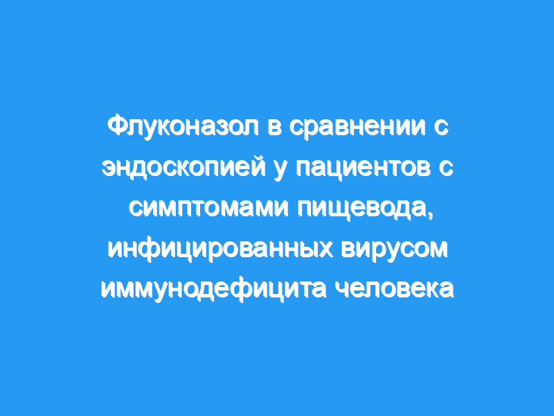 В течение 53-месячного периода 134 ВИЧ-инфицированных пациента с симптомами пищевода были проспективно рандомизированы в группы, получавшие либо стандартные дозы флуконазола, либо эндоскопию.