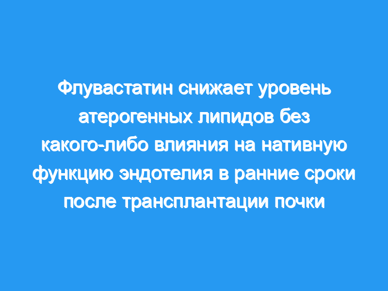 Хотя флувастатин в дозе 40 мг/сут значительно снижает уровень холестерина, он не влияет на функцию эндотелия в первые 3 месяца после трансплантации почки. Отсутствие влияния на функцию эндотелия согласуется с отсутствием влияния на вазоактивные вещества.