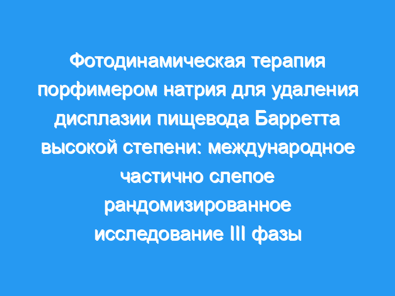 Авторы исследования: Bergein F Overholt, Charles J Lightdale, Kenneth K Wang, Marcia I Canto, Steven Burdick, Roger C Haggitt, Mary P Bronner, Shari L Taylor, Michael G A Grace, Michelle Depot, International Photodynamic Group for High-Grade Dysplasia in Barrett’s Esophagu