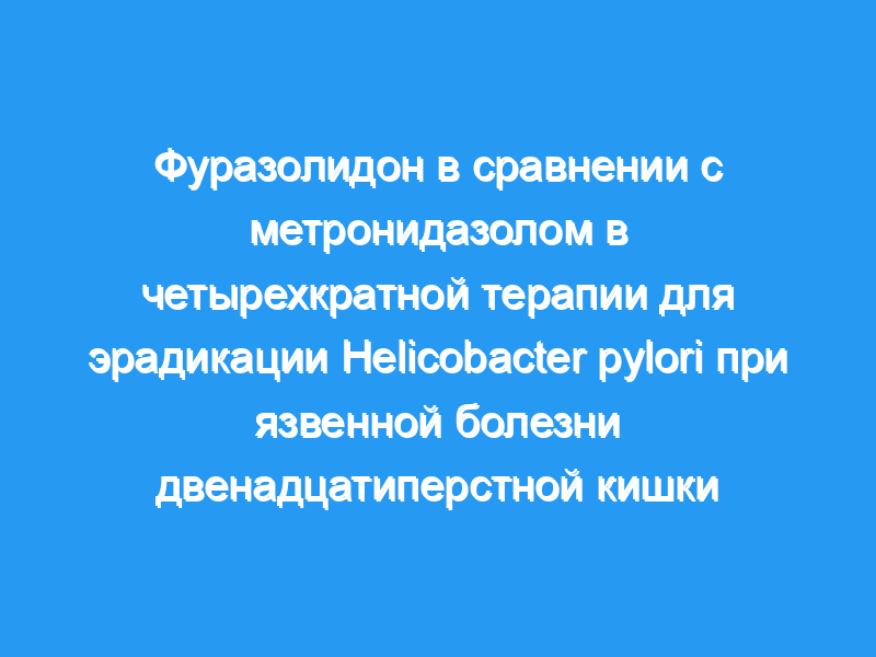Рандомизированное контролируемое исследование для определения эффективности и безопасности фуразолидона по сравнению с метронидазолом в классической четырехкратной терапии для эрадикации инфекции H. pylori у пациентов с язвенной болезнью двенадцатиперстной кишки.